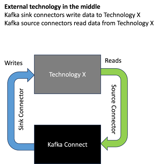 Technologies with both source and sink connectors make it easy to get data into and out of Kafka again, but in practice, the advantage is that it’s easy to use Kafka to write data to the sink/target technology and read it back into Kafka with a source connector.