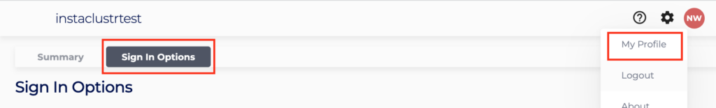 - From the Console go to My Profile from the profile menu on the top right → Sign In Options.