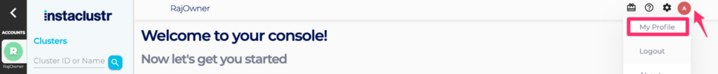 - Log onto the Console and click the My Profile tab from the user icon’s drop down menu
