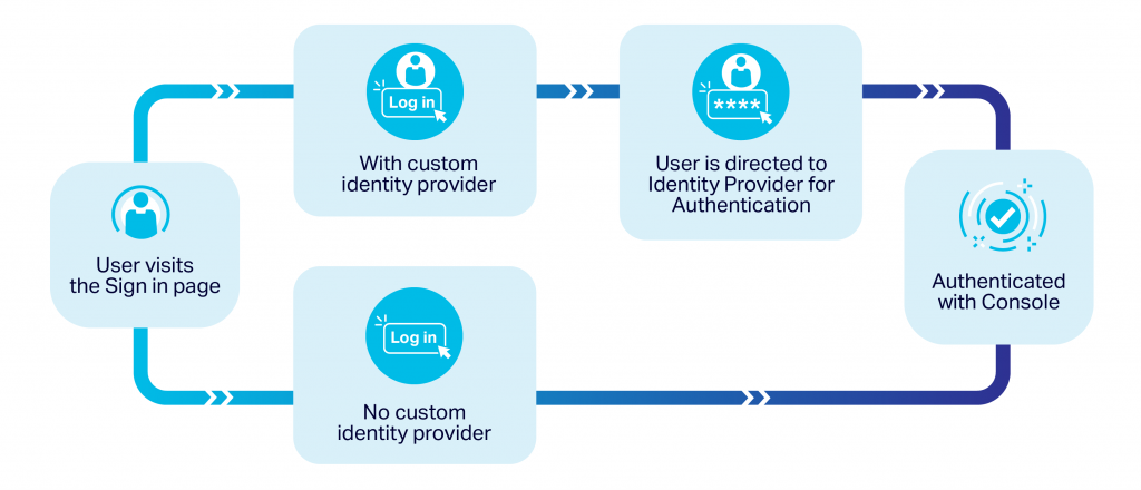 - Verify the Service Provided initiated login is successful – when the user attempts to log in from the console, they are redirected to your registered Identity Provider and gain access to the console on successful login.