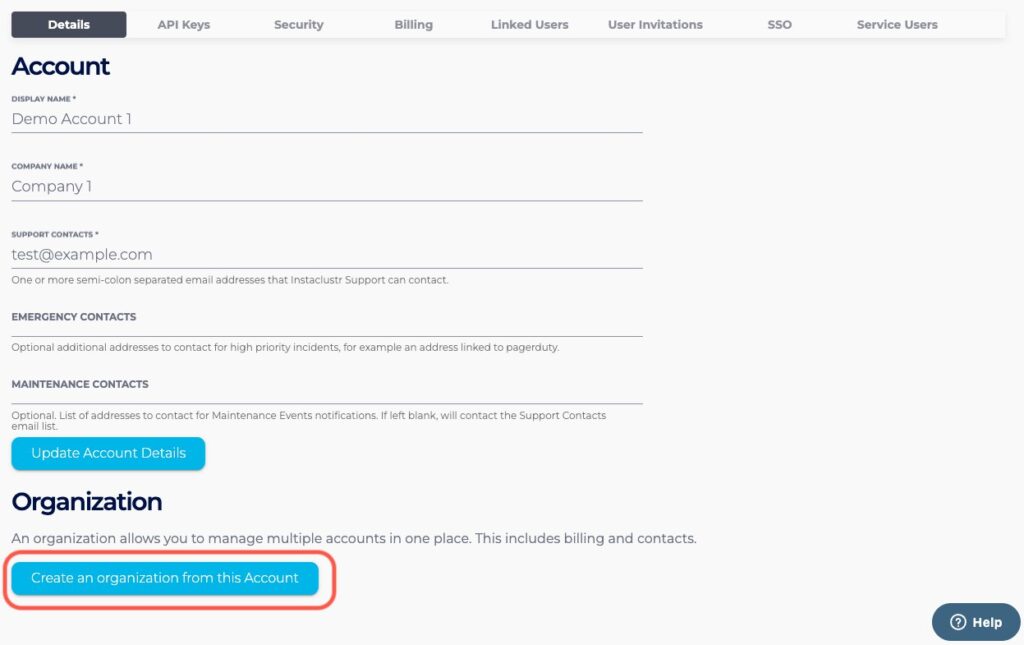 An organization is a way to group multiple Instaclustr accounts together. This gives account OWNER’s the ability to manage many different accounts in one place. Functions which may be managed by an organization include: