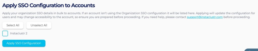 - Select the accounts you wish to apply the SSO settings to.
