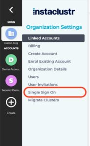 First, if the organisation does not have SSO applied, contact Instaclustr Support to have it set up on the organisation. If an organisation was originally created from an account which already had SSO applied, it will become the default SSO provider on the organisation.
