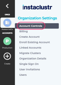 To view these controls, navigate to your Organization’s Admin Panel and select Account Controls from the left hand navigation menu.
