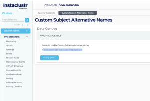 Subject Alternative Names can be added at the time of cluster creation and for existing clusters. This feature is available to be used via Instaclustr managed console, our API and via Terraform Provider.