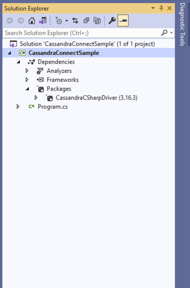Search for and install CassandraCSharpDriver in the NuGet Package manager window.