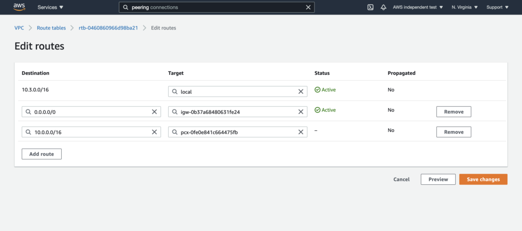 - We automatically generate the routes within our VPC to ensure traffic is routed correctly to your VPC. Once you have accepted the peering request, the VPC peering connection will show up as active in your Instaclustr dashboard.Note: If you have EC2 instances running in your VPC that need access to the peering connection, make sure that you create an explicit subnet association in your VPC’s main route table to the subnet of that instance.