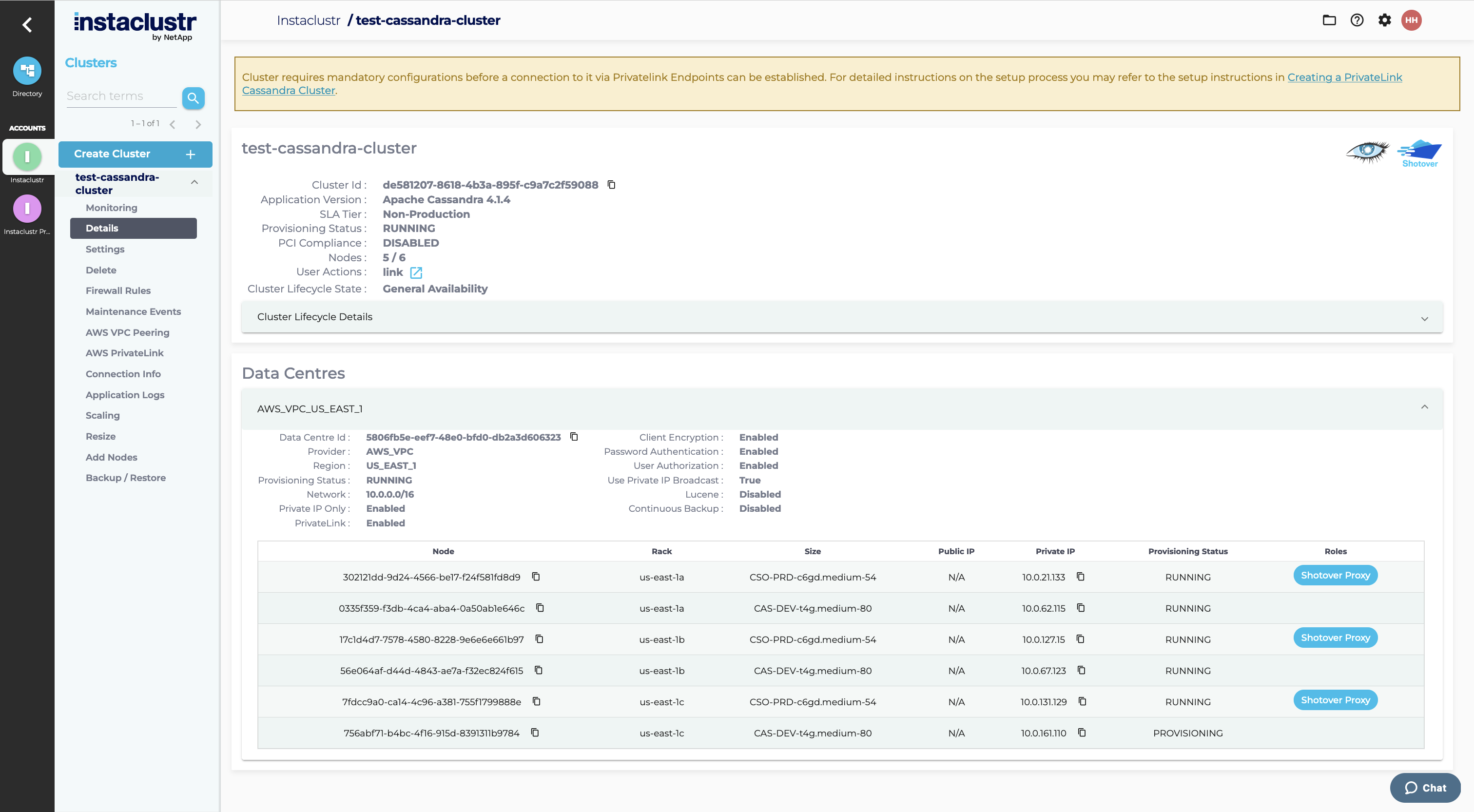 Instaclustr recommends that you first test your applications against a data centre in a non-production setting to verify that the resize process doesn’t interrupt your applications.