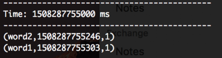 - Switch back to the Spark console window, you should see something like the following which is the summary from a single Spark streaming batch: