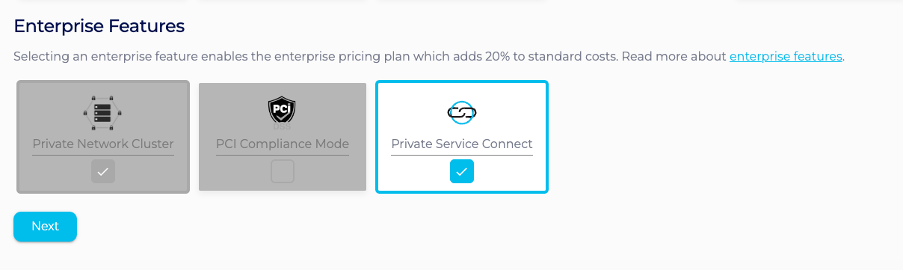 3 – On the same page, enable client-encryption and authentication if required. MTLS support and Enterprise Addons for PSC clusters are being implemented at the moment and will be available soon.