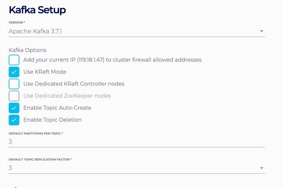 2 – On the next page, specify the Kafka version, among other Kafka options, as you would when creating a standard Kafka cluster.
