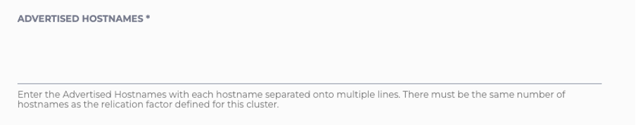 5 – On the same page, enter the Advertised Hostnames. Advertised Hostnames are used by client applications to connect to the cluster. Each Advertised Hostname corresponds to one Private Service Connect endpoint, which in turn connects to one Service Attachment exposed by the cluster. For instance, if Advertised Hostnames provided are