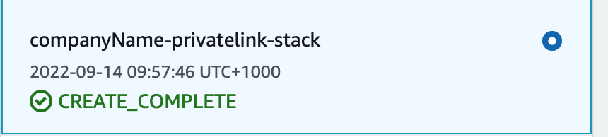 - Once completed, the progress will be displayed as CREATE_COMPLETE, which means the client can start connecting to the PrivateLink Kafka Cluster. You can now connect to the cluster with kafka.test.com:9091 and connect to Kafka Schema registry/Karapace Schema Registry/Karapace Rest Proxy with https://privatelink.7a690416c0ae49f89530f6018ab60c0e.cu.dev.instaclustr.com:{8083/8085}