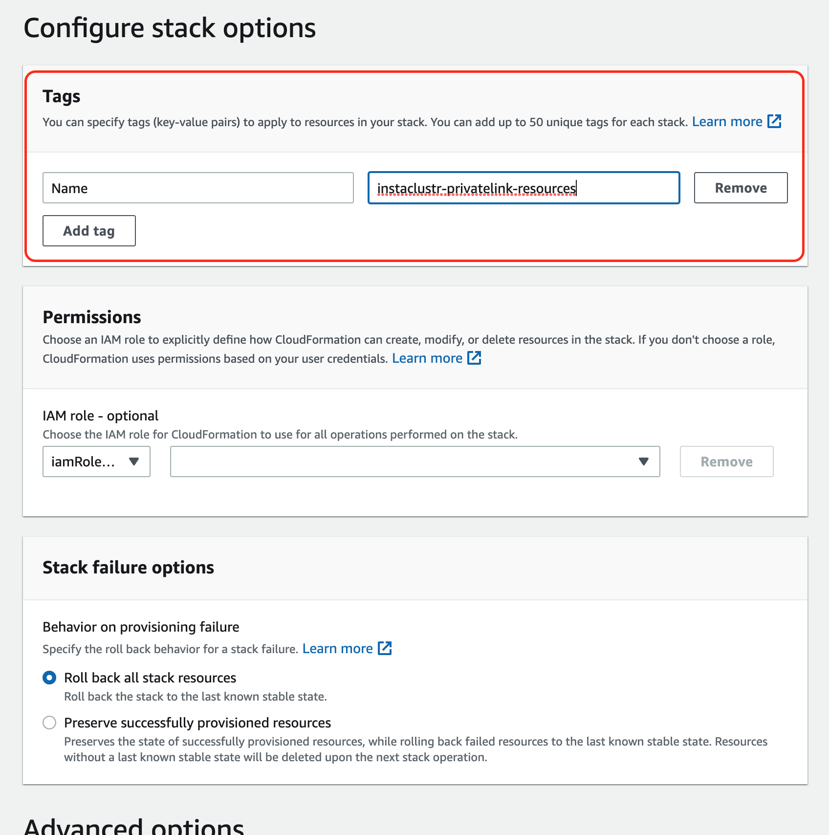 - Enter “Next” and the following form should appear. Please add a tag with key Name and value as instaclustr-privatelink-resources, as this would help in debugging should issues arise.Please update the other permission and policies if needed, otherwise, leave it as default. When it is done, select Next.