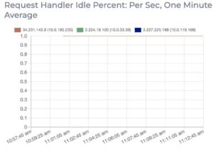 The Network and Request Handler Capacity metric group contains metrics regarding the amount of time the request handlers and network processors are idle. The metrics available are: