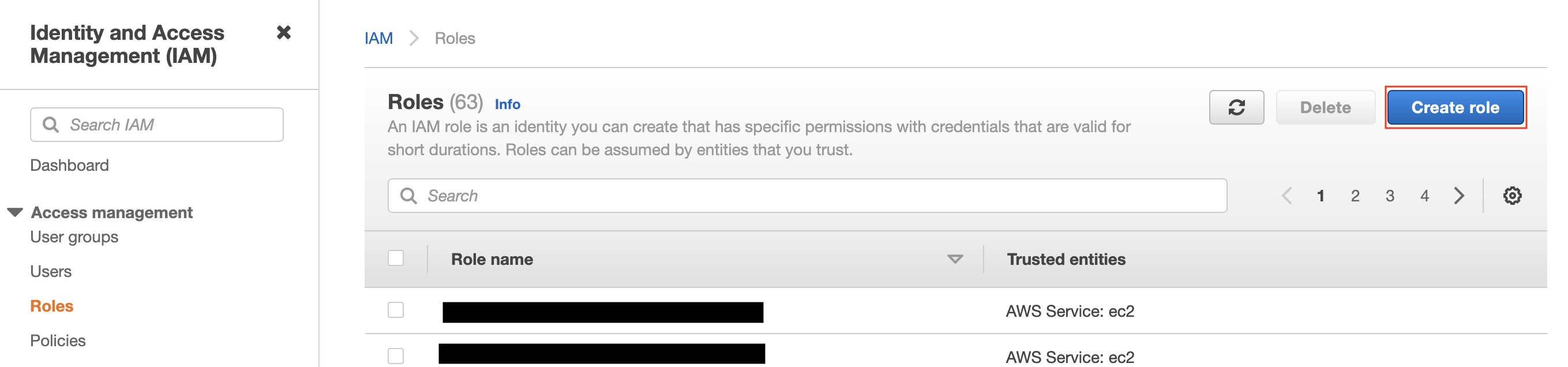If you use AWS console- From the dashboard, go to IAM services, Roles
