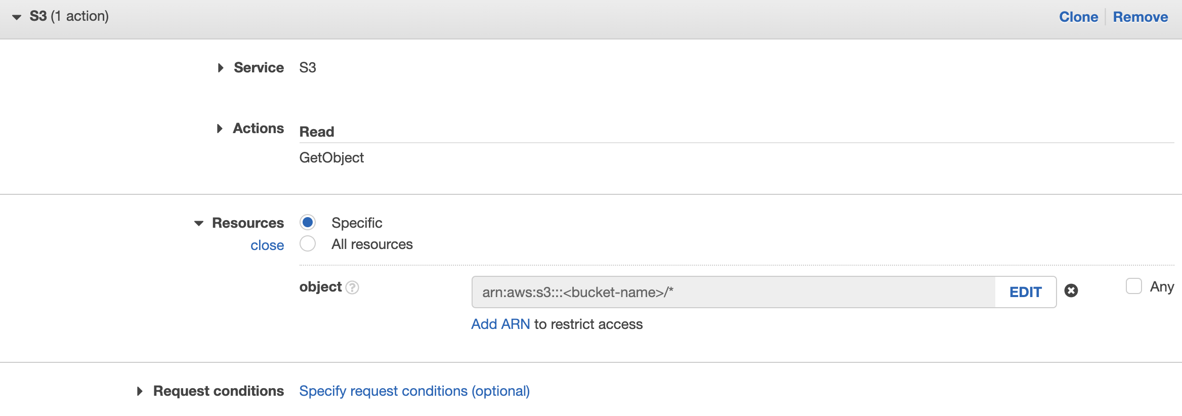 - Service: S3, Action: Read → GetObject