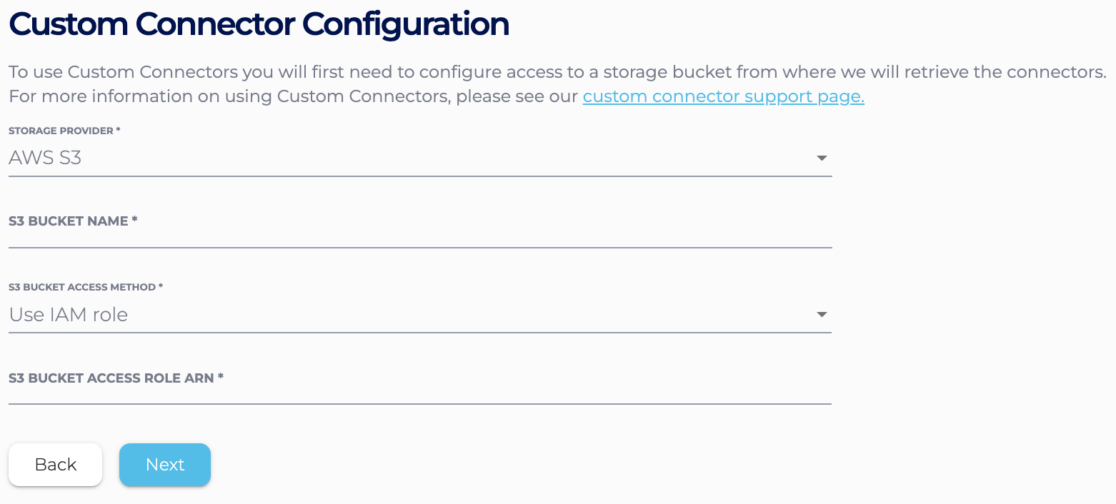 choose “Use IAM role”. Input the S3 access role ARN