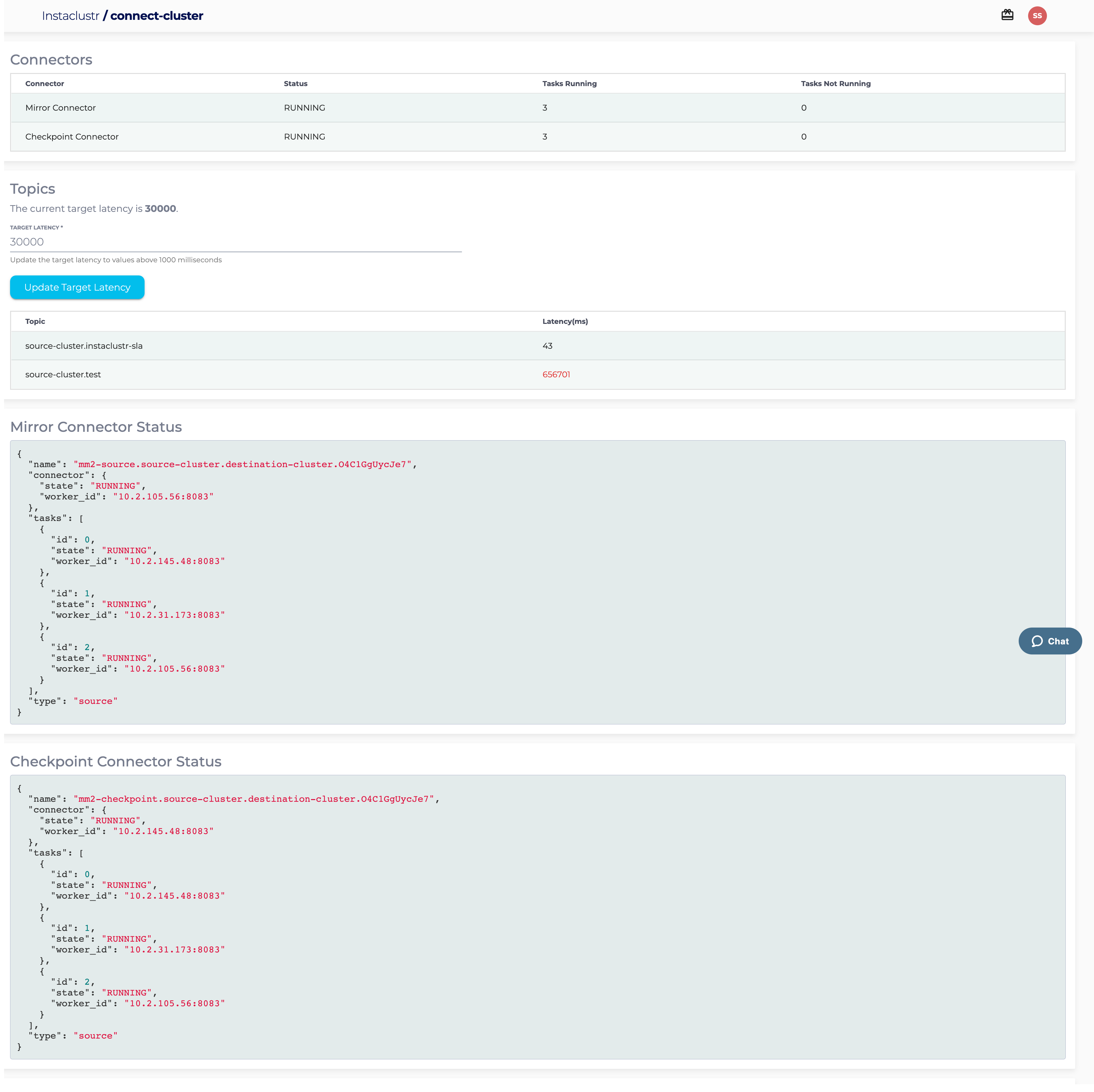- All mirrored topics are active and their average replication latency values are lower than the target latency.