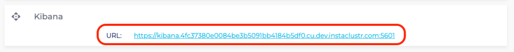 - Scroll down to Kibana, where the URL for your instance will be listed.