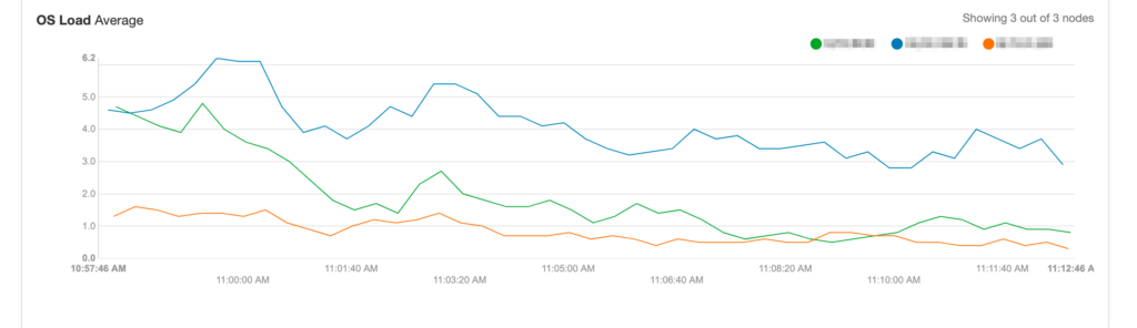 The OS Load: Average column displays the average amount of processes using or waiting for CPU on your node over a period of time.