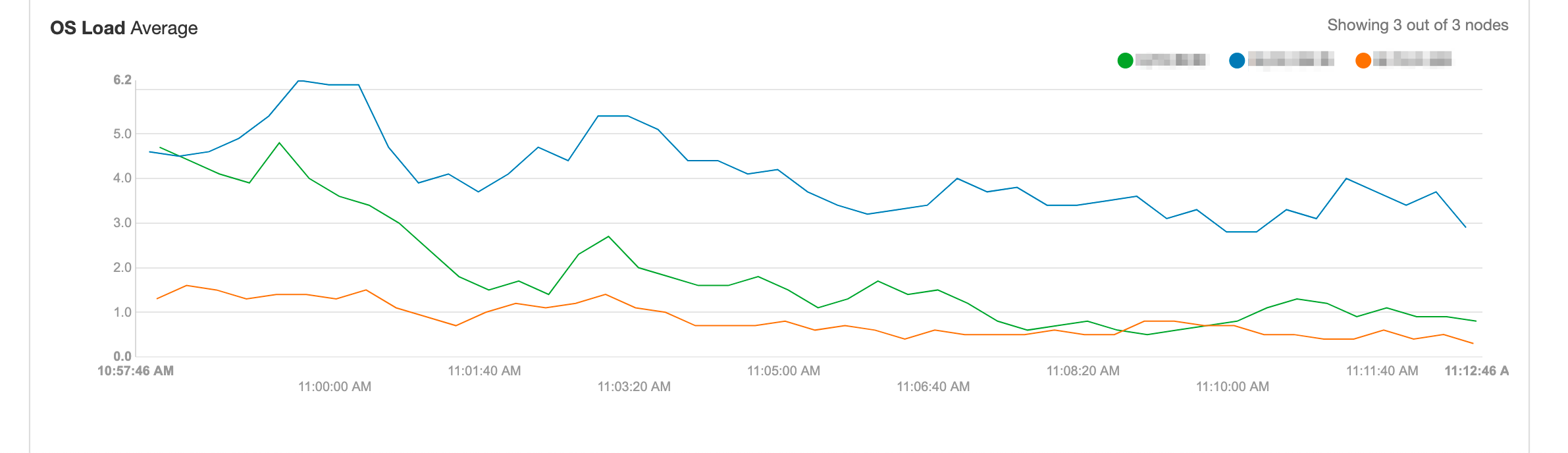Average OS load larger than the number of cores indicates that the CPU was temporarily overloaded and reached the limits of its processing capacity. If you are experiencing consistently high OS load and not reaching the desired throughput on your cluster, you may need to tune your data model or add nodes to your cluster to increase processing capacity. Contact Instaclustr Support if you need further assistance in dealing with OS load issues.