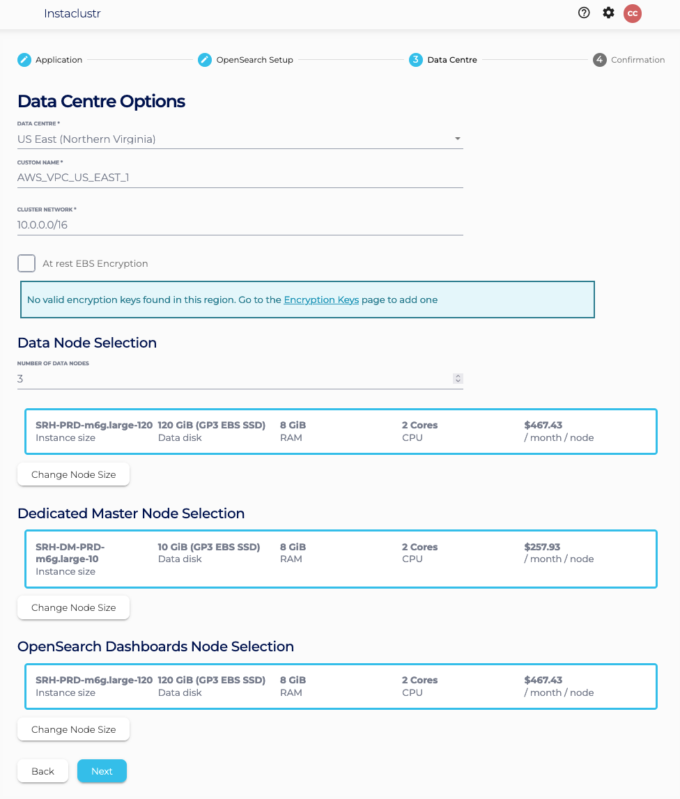 - Under the Data Centre page, confirm the selected Data Centre is correct. Click Next.