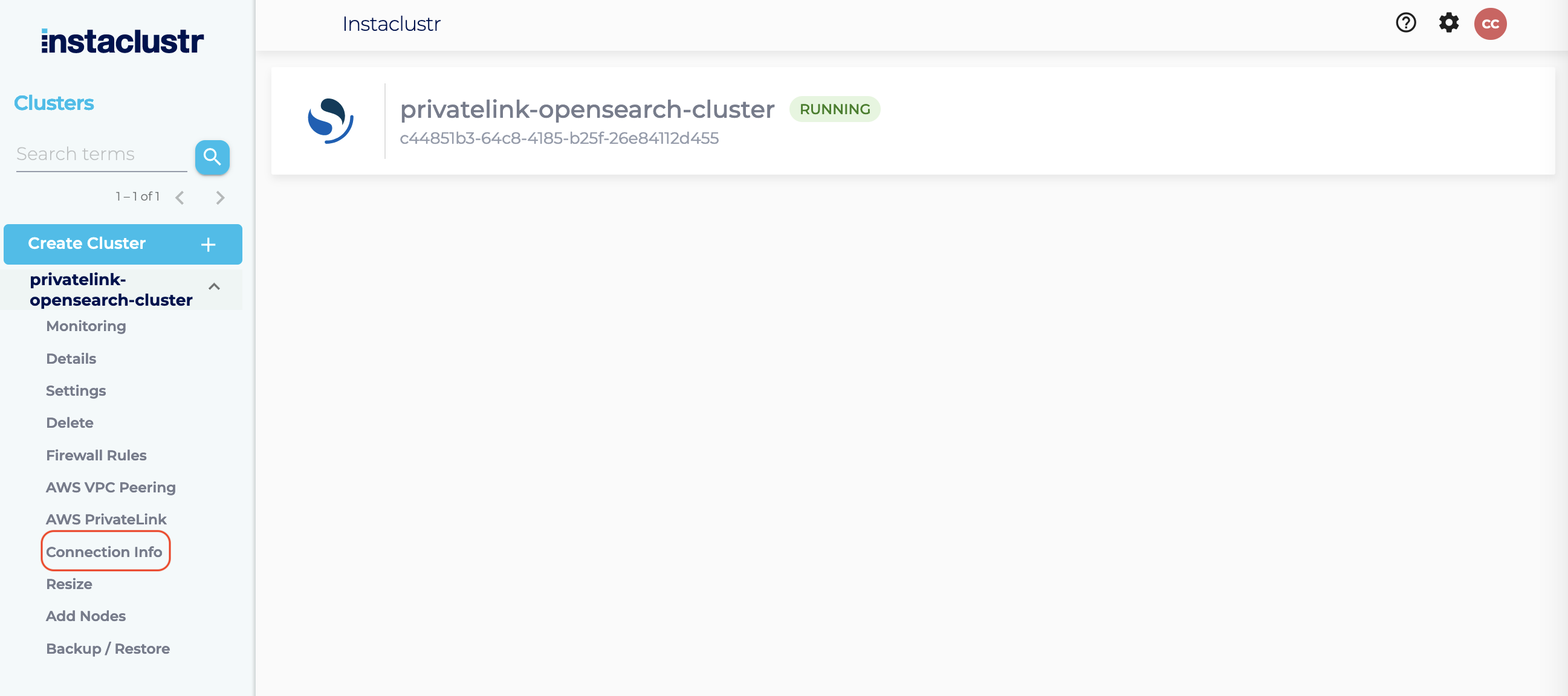 - Log into the console, click the created cluster and enter the Connection Info page.