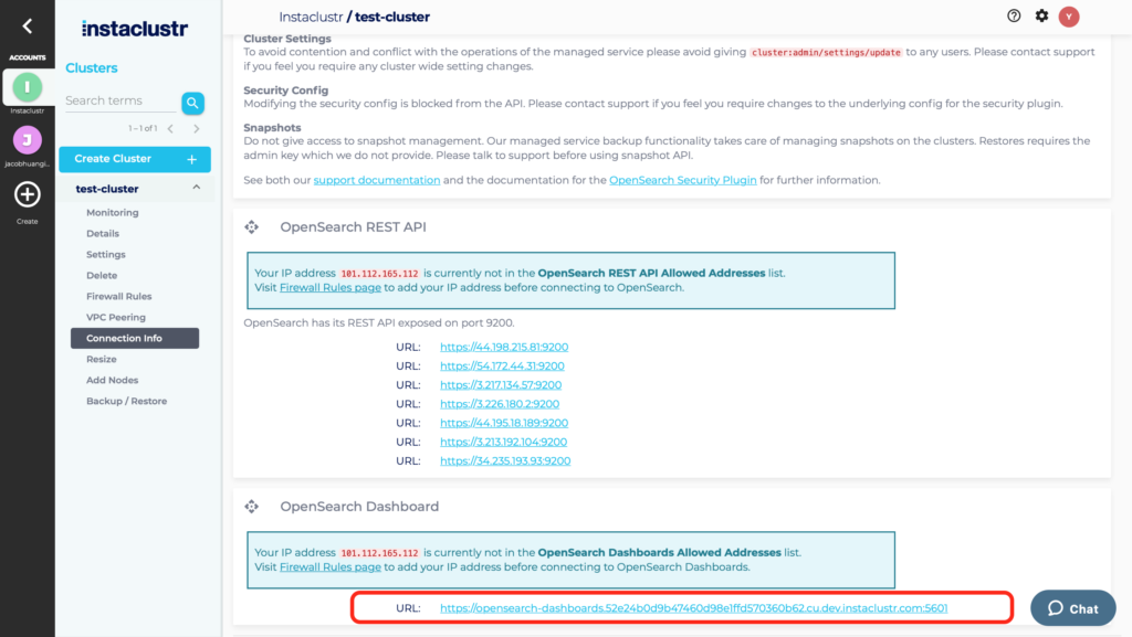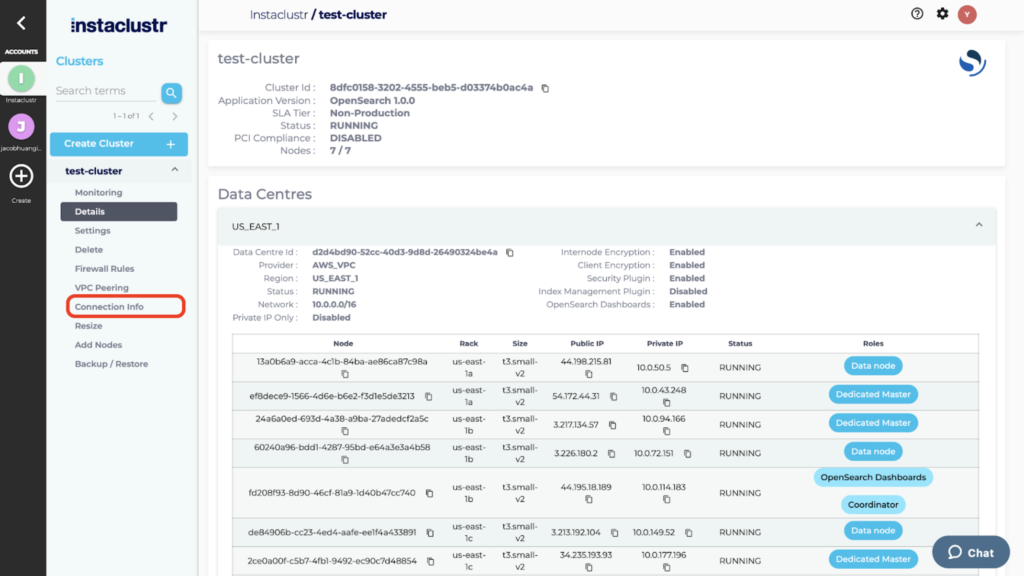 - Select your instance in the Instaclustr Console and then select Connection Info from the navigation menu.