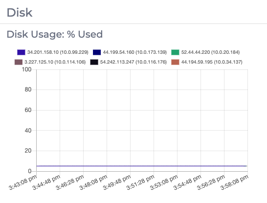 The disk usage metric shows the percentage of space used on the data partition of a node. This includes the main files containing your data such as index and documents.