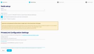 Under the Applications page, select Redis as the application and AWS as the provider. You should see a checkbox under Enterprise Feature called PrivateLink.