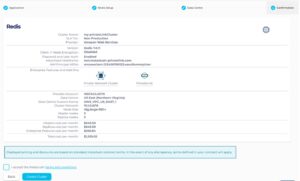 Under the Confirmation page, check that the configurations such as Advertised HostName and IAM Principal ARNs are properly configured, accept the Instaclustr terms and conditions, and click Create Cluster.