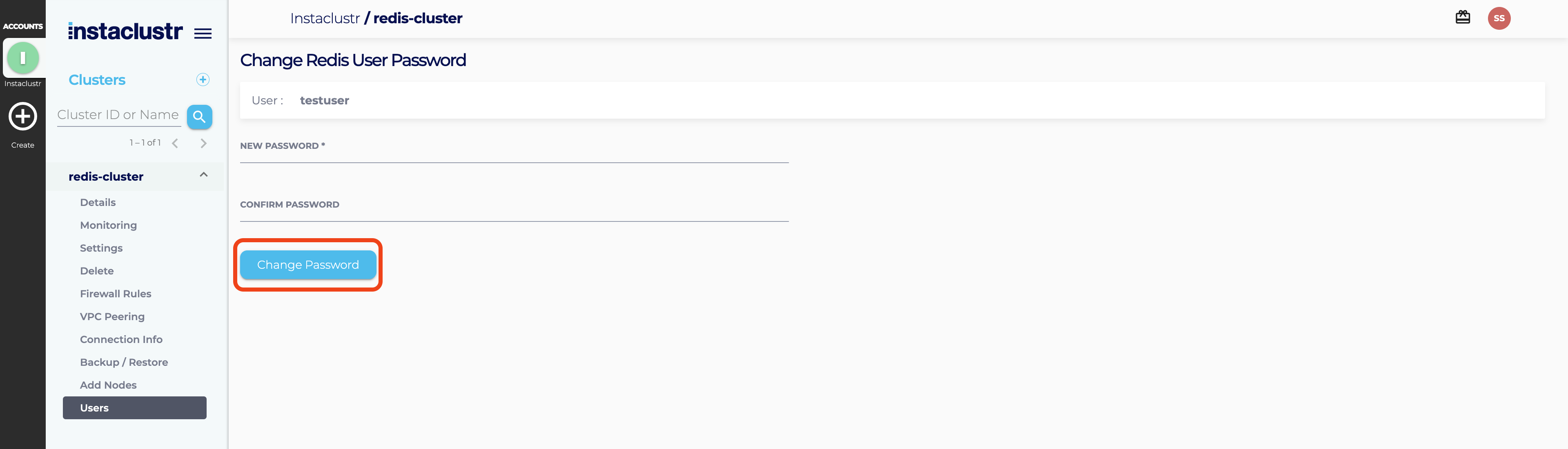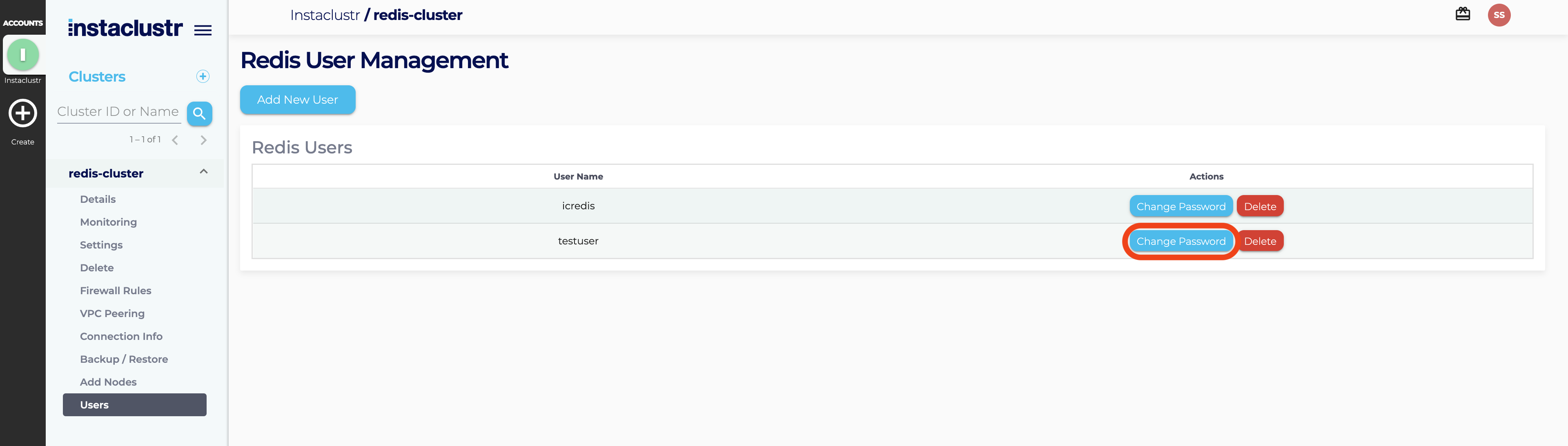 - To change the password of an existing Redis user, first visit the Users page of your Redis cluster.
