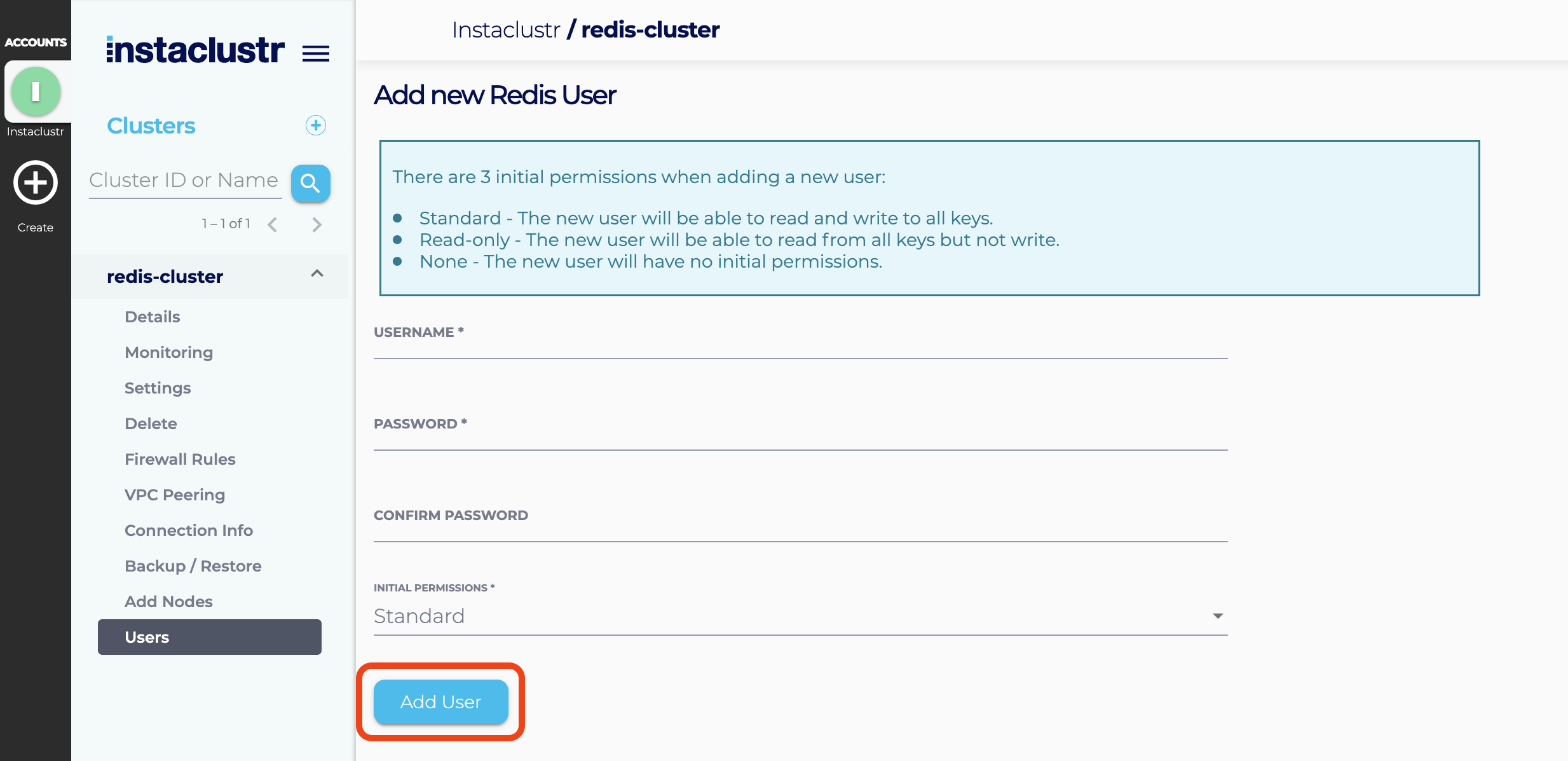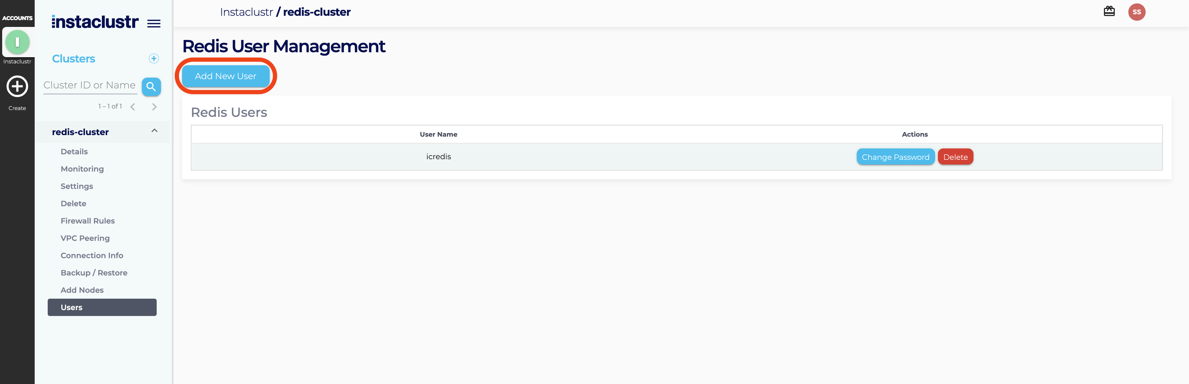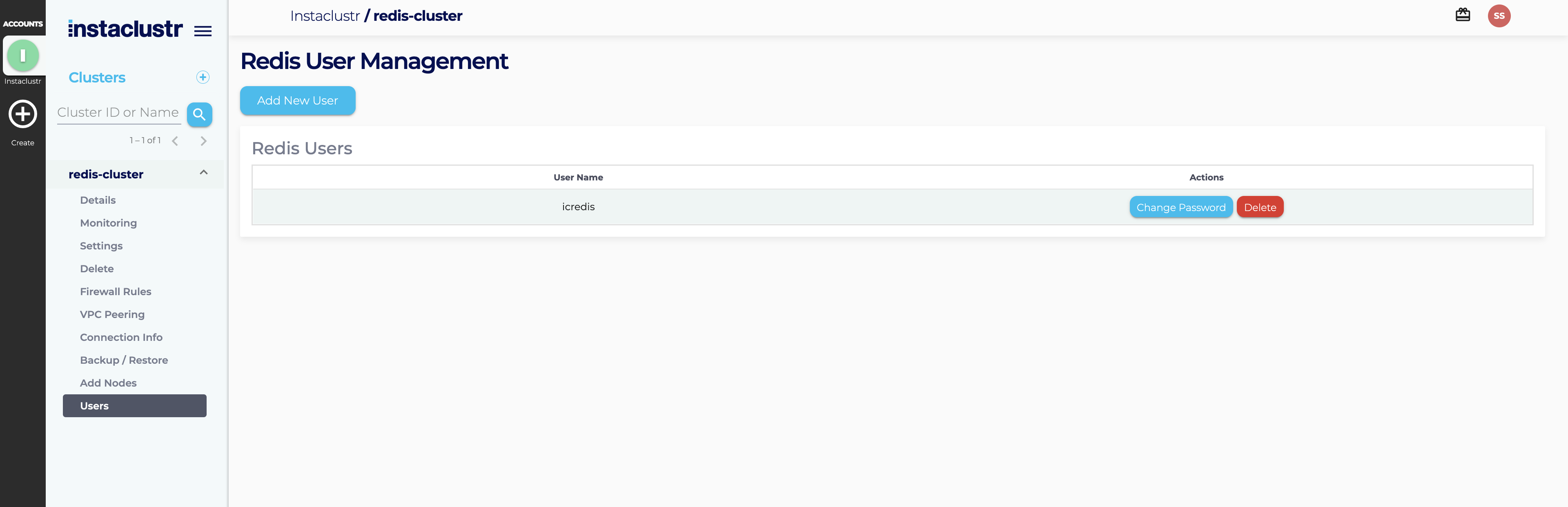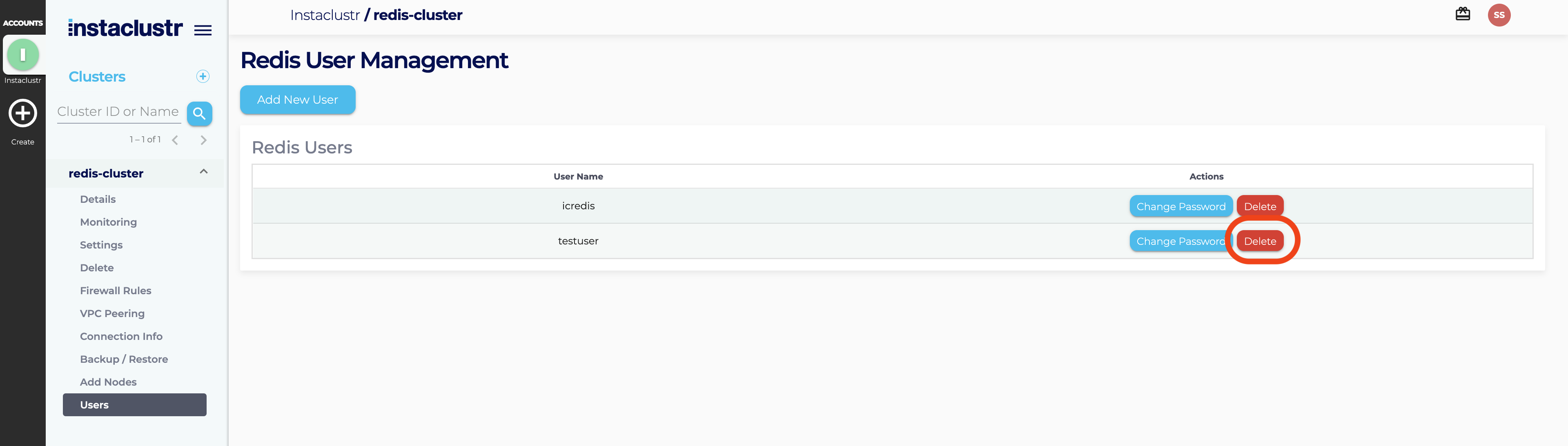 - To delete an existing Redis user, first visit the Users page of your Redis cluster.