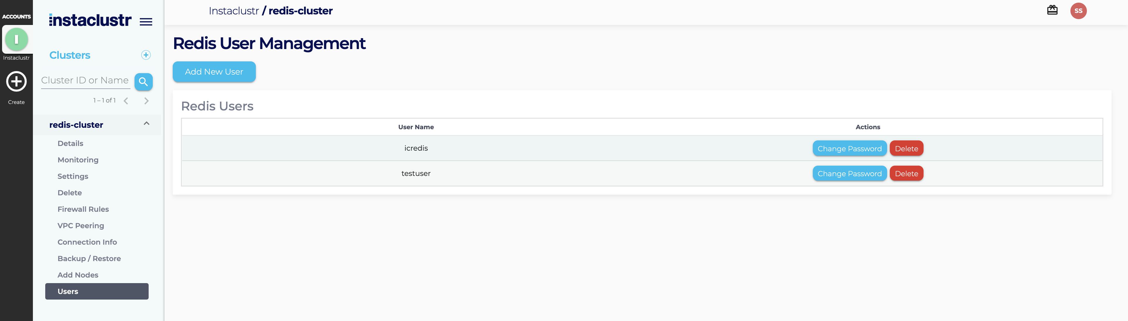 Instaclustr provides a User Management UI for Redis clusters to help you with managing users. The User Management UI provides four functions: