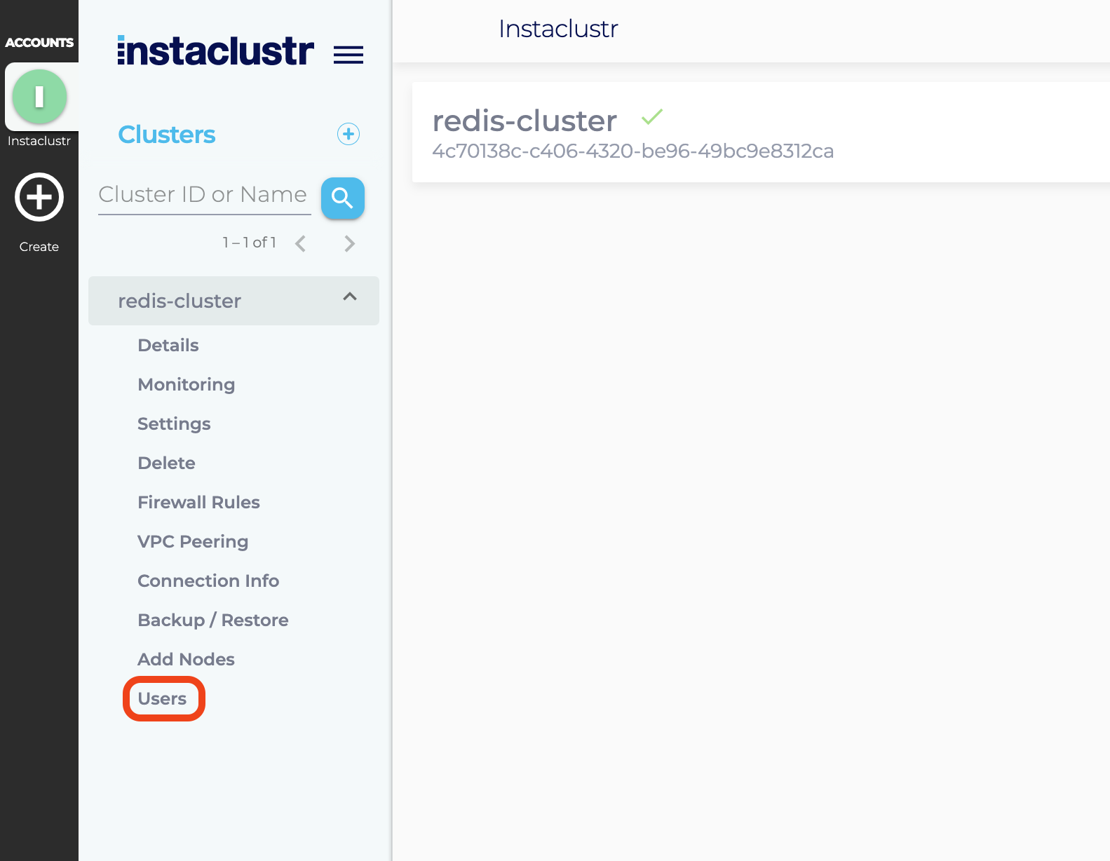 - To list available Redis users, select Users under the sidebar menu of your Redis cluster.