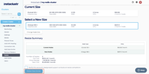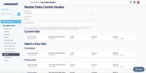 Once you have selected a new size, you will be shown a summary of the resize, which will include the new price for managing your cluster. Click on Resize Data Centre to begin the resize process.