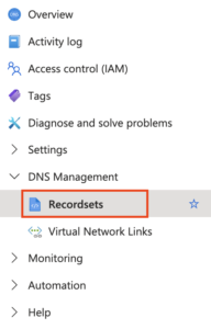 - Navigate to DNS Management -> Recordsets, click Add in the page