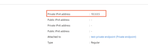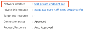 - In the Private Endpoint overview page, navigate to Network Interface. From there, you could get the Private IP address for this Private Endpoint