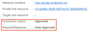 - After creation, verify that the connection status is marked as Approved in the Private Endpoint page.