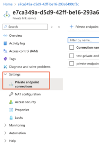 - In the Private Link service page, navigate to Settings -> Private endpoint connections from the menu on the left side