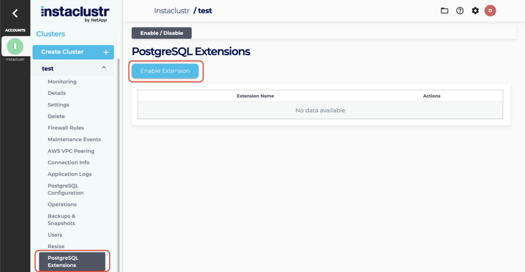 PostgreSQL extensions can also be enabled via Update PostgreSQL cluster details endpoint from provisioning API. You can find the how to access and use Instaclustr’s provisioning API here.