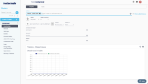 The Dead rows metric provides the number of dead rows in a table. When a row of a table is updated or deleted, it is not actually removed from the disk and it persists as a ‘dead row’ until the VACUUM operation is called (usually by PostgreSQL’s autovacuum daemon). This frees the space to be reused.
