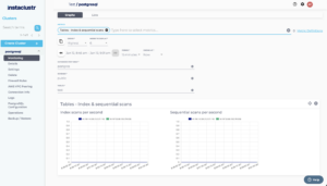 The Index scans metric provides the number of index scans of the table initiated per second. Index scans occur when queries result in the PostgreSQL Planner deciding to use one or more indexes to determine which rows are relevant to the query, instead of reading the whole table.