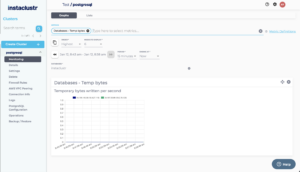 The Temp bytes metric provides the number of temporary bytes written per second. This metric reveals the rate at which the data is being written to temporary files as a result of queries in the database.