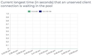- Current longest time (in seconds) that an unserved client connection is waiting in the pool