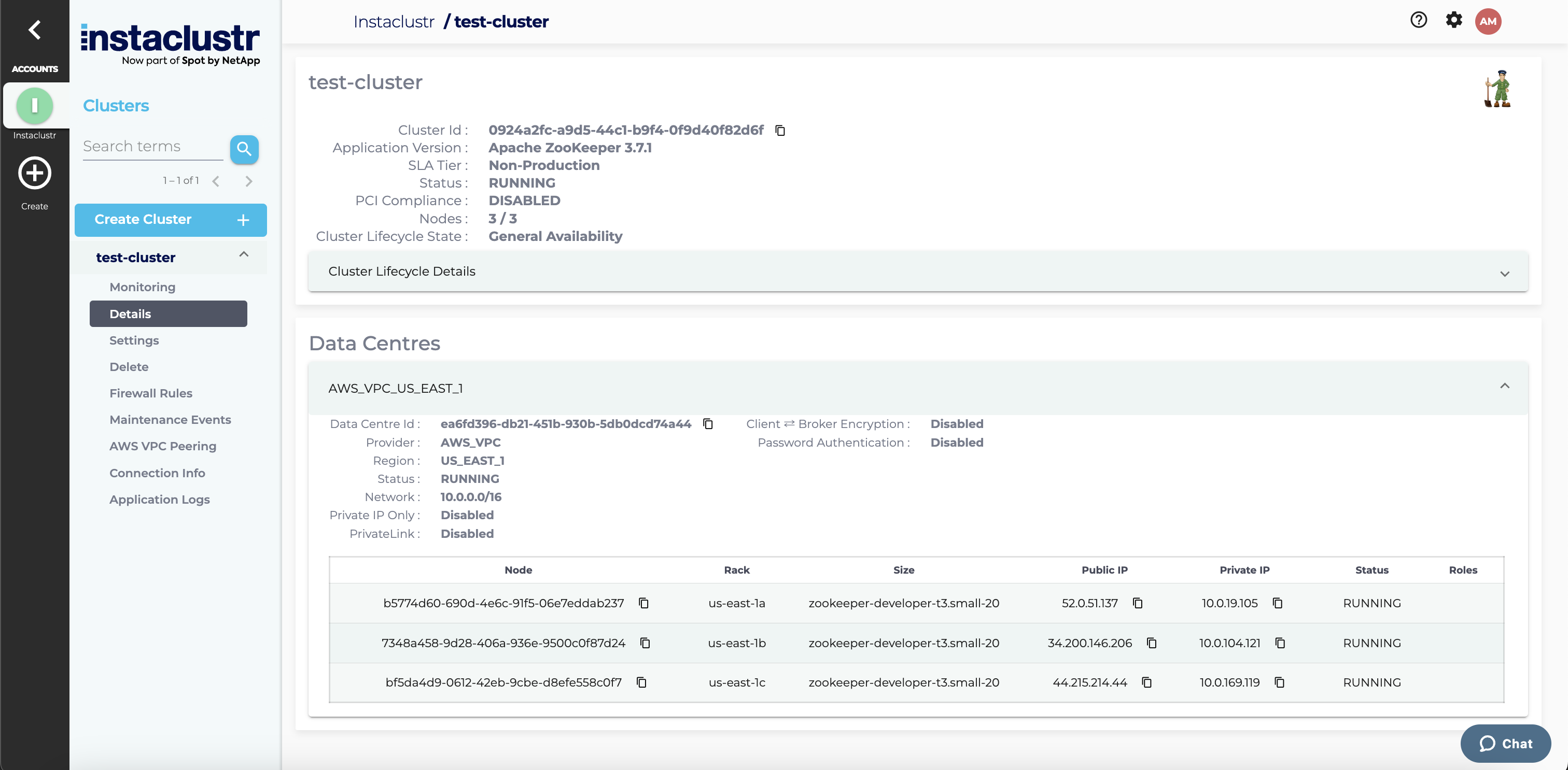 For information on how to provision an Apache ZooKeeper Cluster via the Instaclustr Provisioning API, see Instaclustr Provisioning API page.