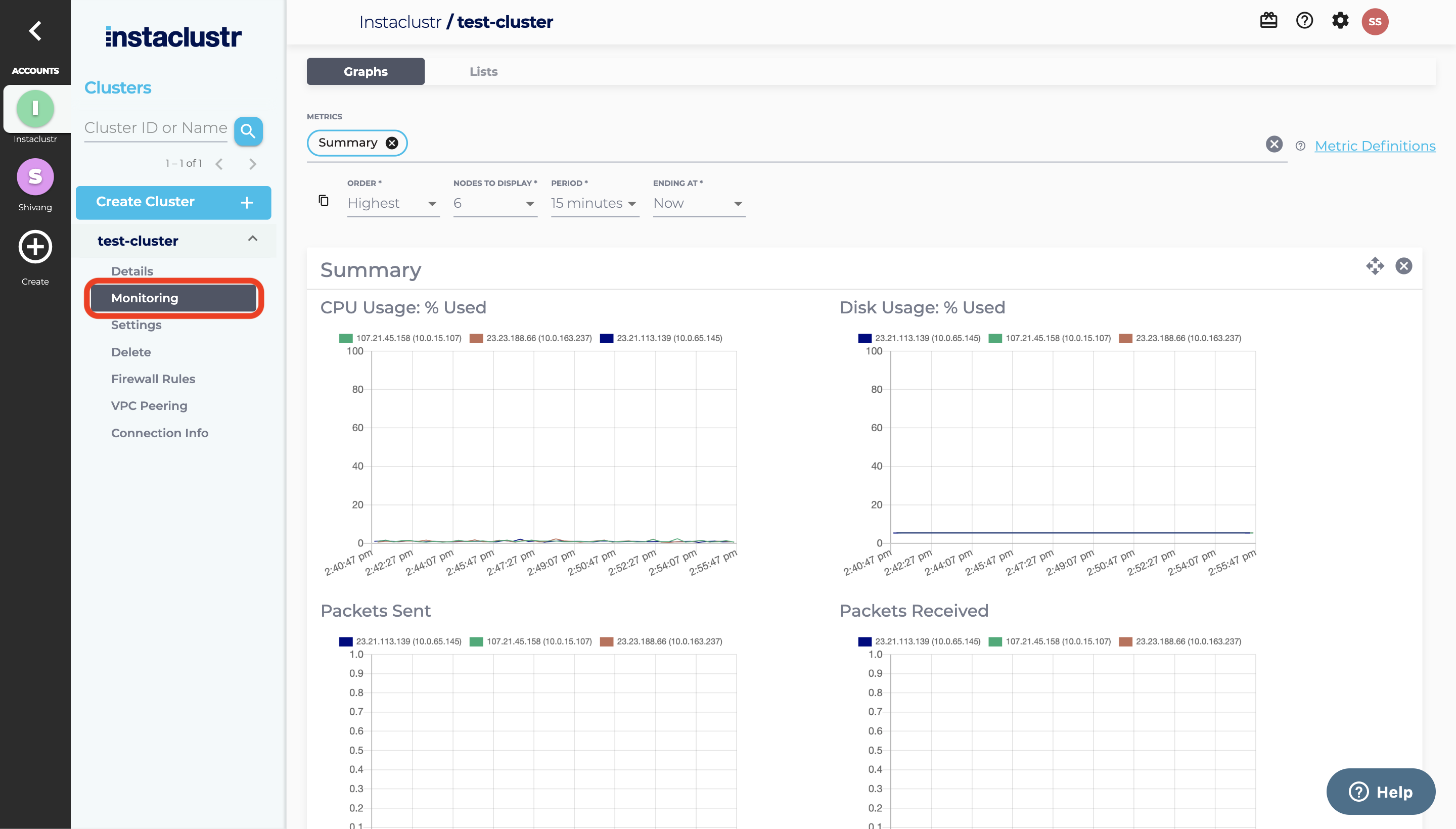 - After your cluster has finished provisioning, select Monitoring listed under the navigation menu of your cluster. This opens the cluster’s monitoring page.