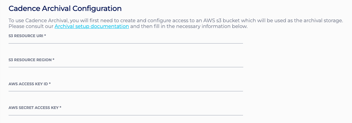 - Do not use your created S3 bucket for non-Archival purposes (i.e. storing Cadence-unrelated data).