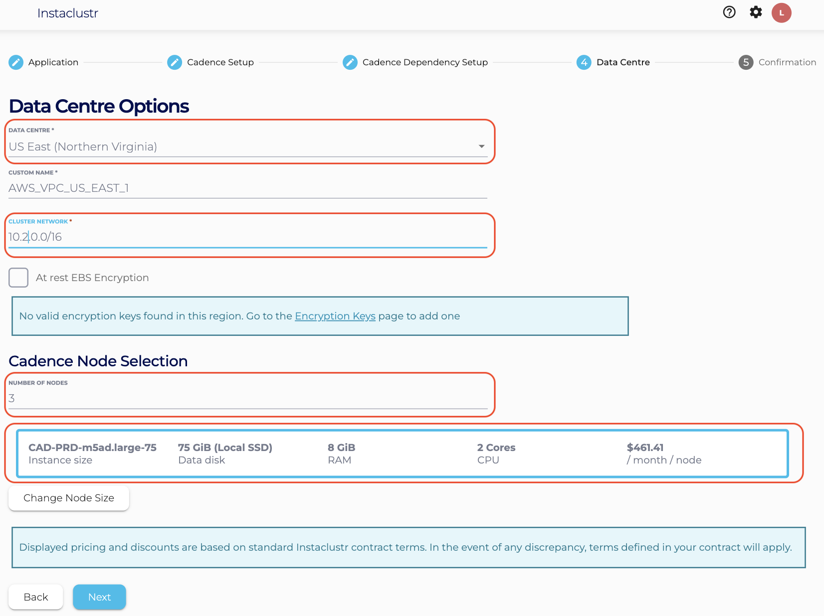 - Under the Data Centre page, confirm the selected Data Centre is correct. Click Next.